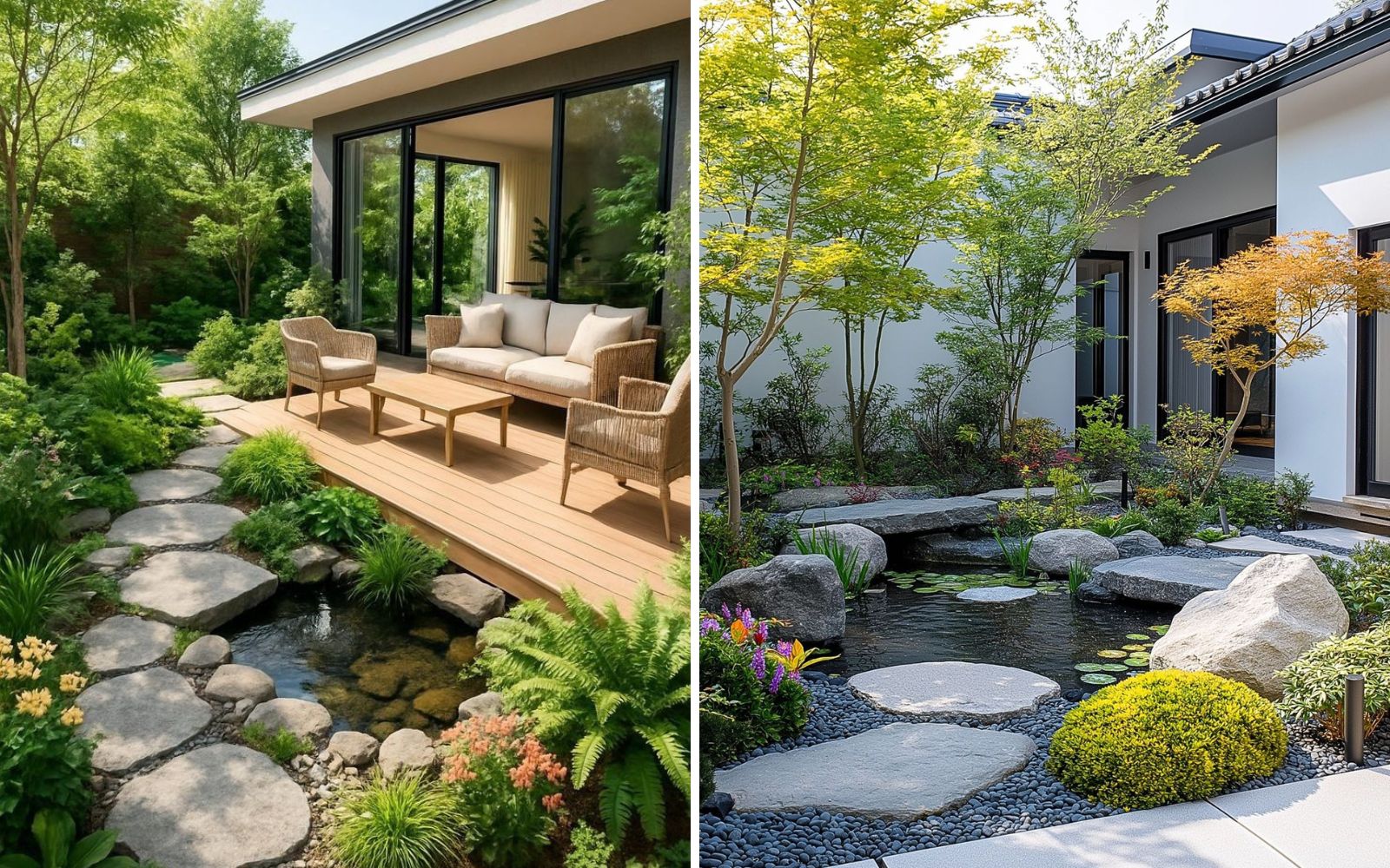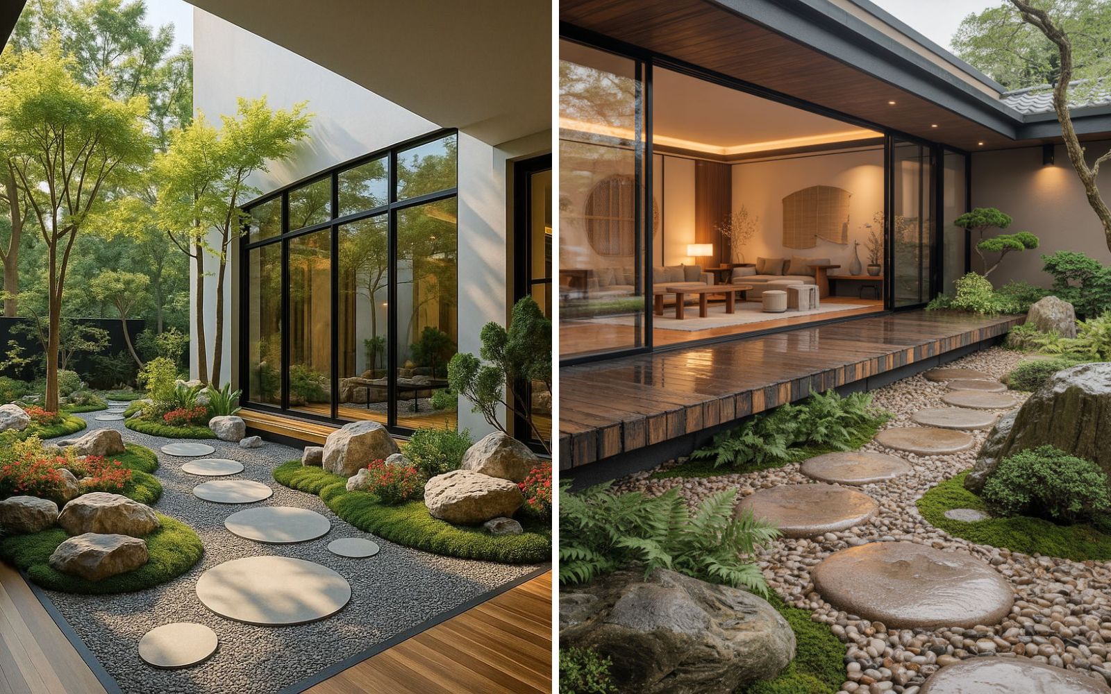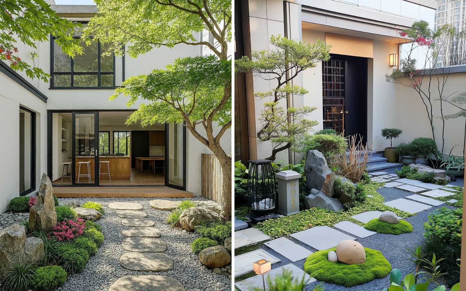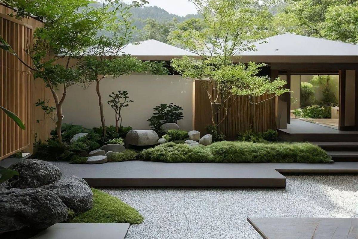 Vườn Nhật trước nhà thường mang lại cảm giác an yên, phù hợp gia chủ yêu sự giản dị và chiều sâu.